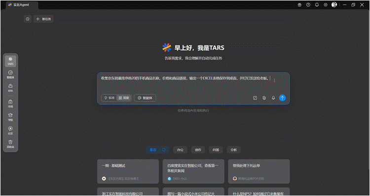 “收集京东数据”“BOSS招聘新人”“小红书获取舆情”只是几个典型场景。任何需要跨系统、多步骤的办公任务,都是「深度规划」的用武之地: