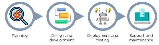 部署和测试- 此阶段通常包括机器人的执行。任何意外的中断都将在部署期间进行处理。为了确保准确运行,测试这些机器人的 bug 和错误至关重要。
