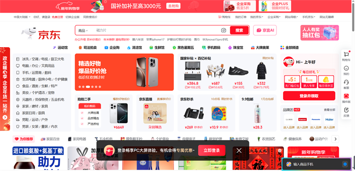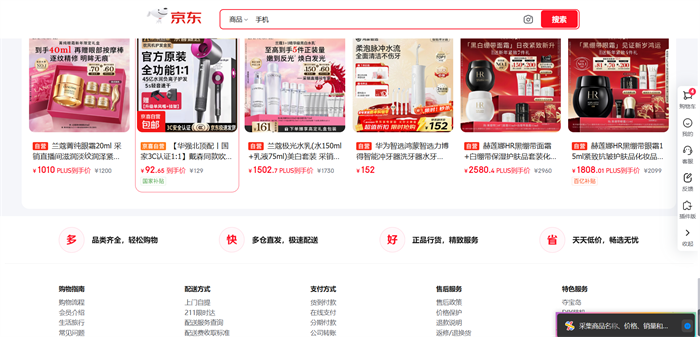 3、然后第一步,它就自动打开京东网页,在页面上找到搜索框,输入我们的搜索需求“手机”,并点击搜索按钮;