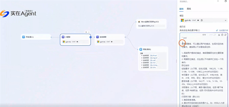 1、给Agent配置好角色要求,设置好招聘官提示词,利用大模型和RPA搭建好自动化流程;