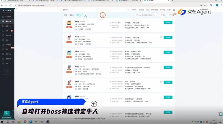 3、拆解完成后,它就会根据你的招聘需求自动打开BOSS直聘筛选符合条件的牛人;