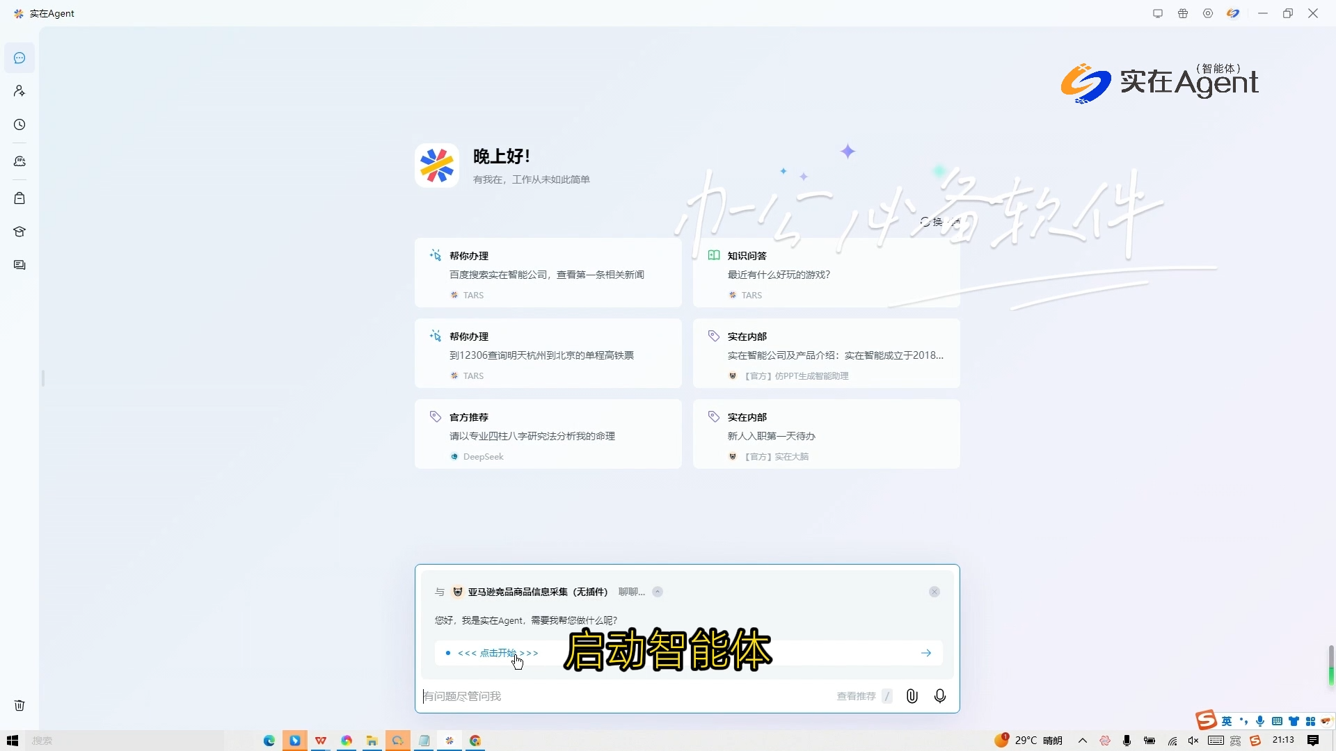 1、打开实在Agent客户端,通过首页启用已经设计好的竞品商品信息采集智能体(智能体使用也可以通过左侧侧边栏的智能体列表中找到,那里保存了个人搭建好的所有智能体);