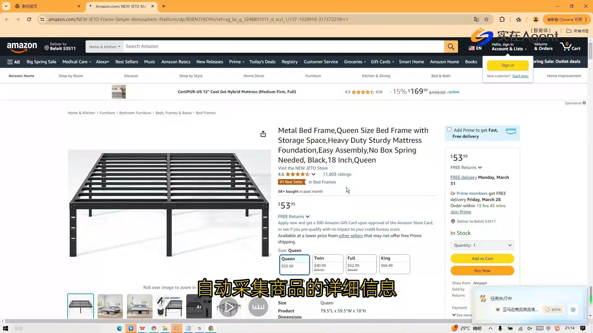 3、接下来它就会自动打开亚马逊商品采集目标网址,自动采集商品的详细信息;