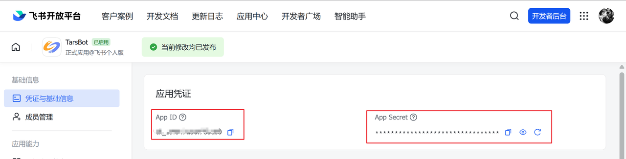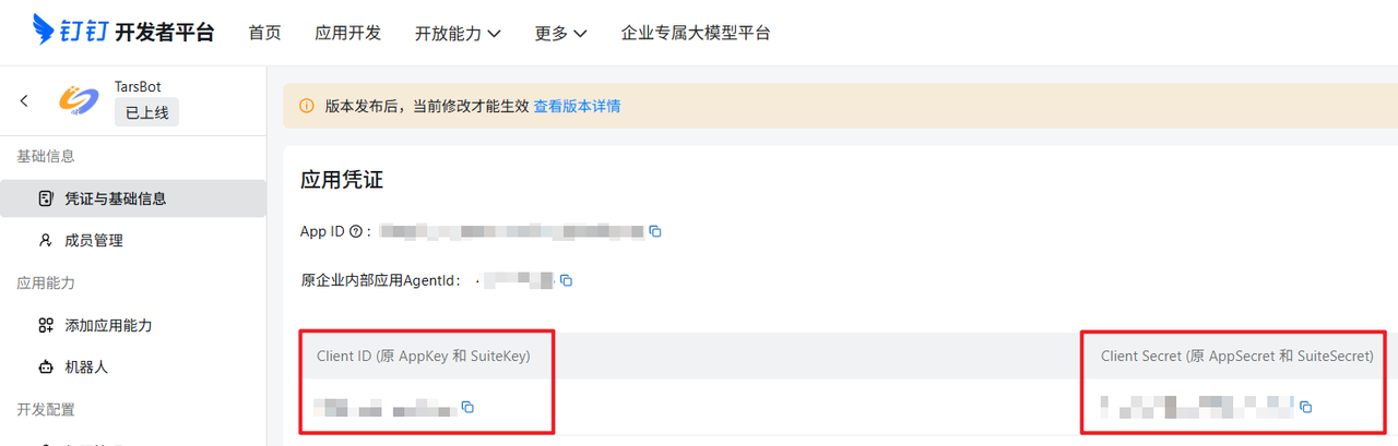 2.获取凭证:在“凭证与基础信息”中复制 Client ID 和 Client Secret。