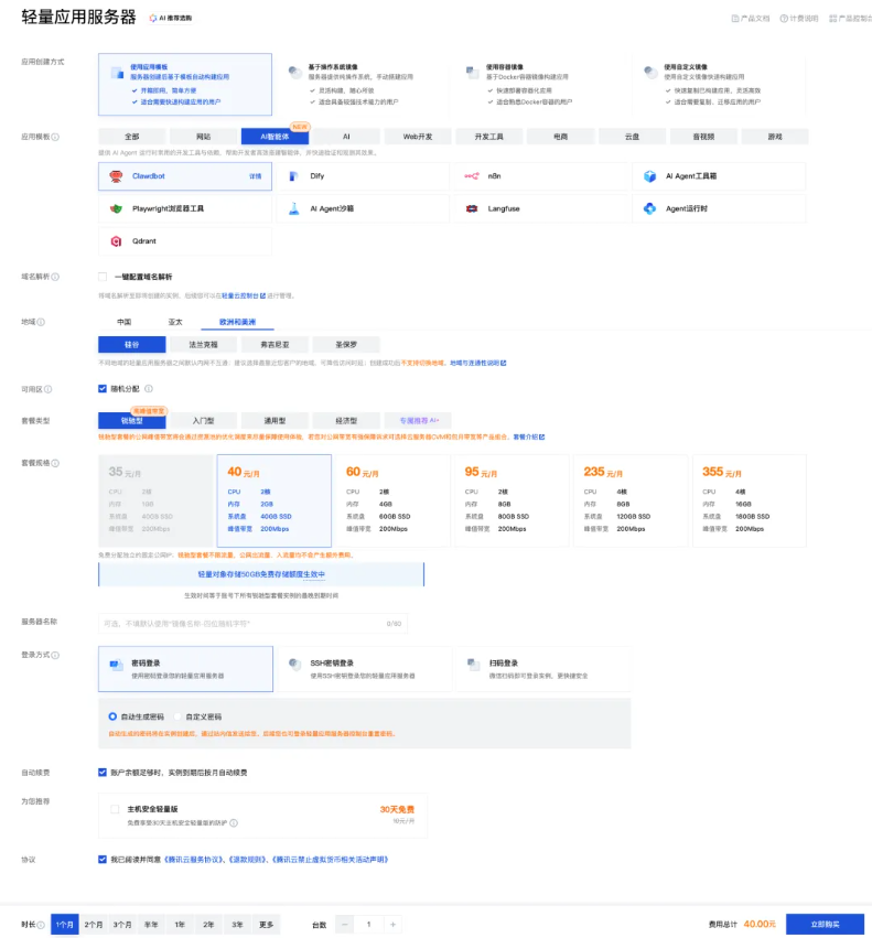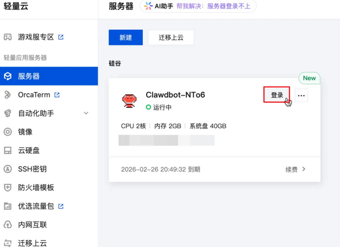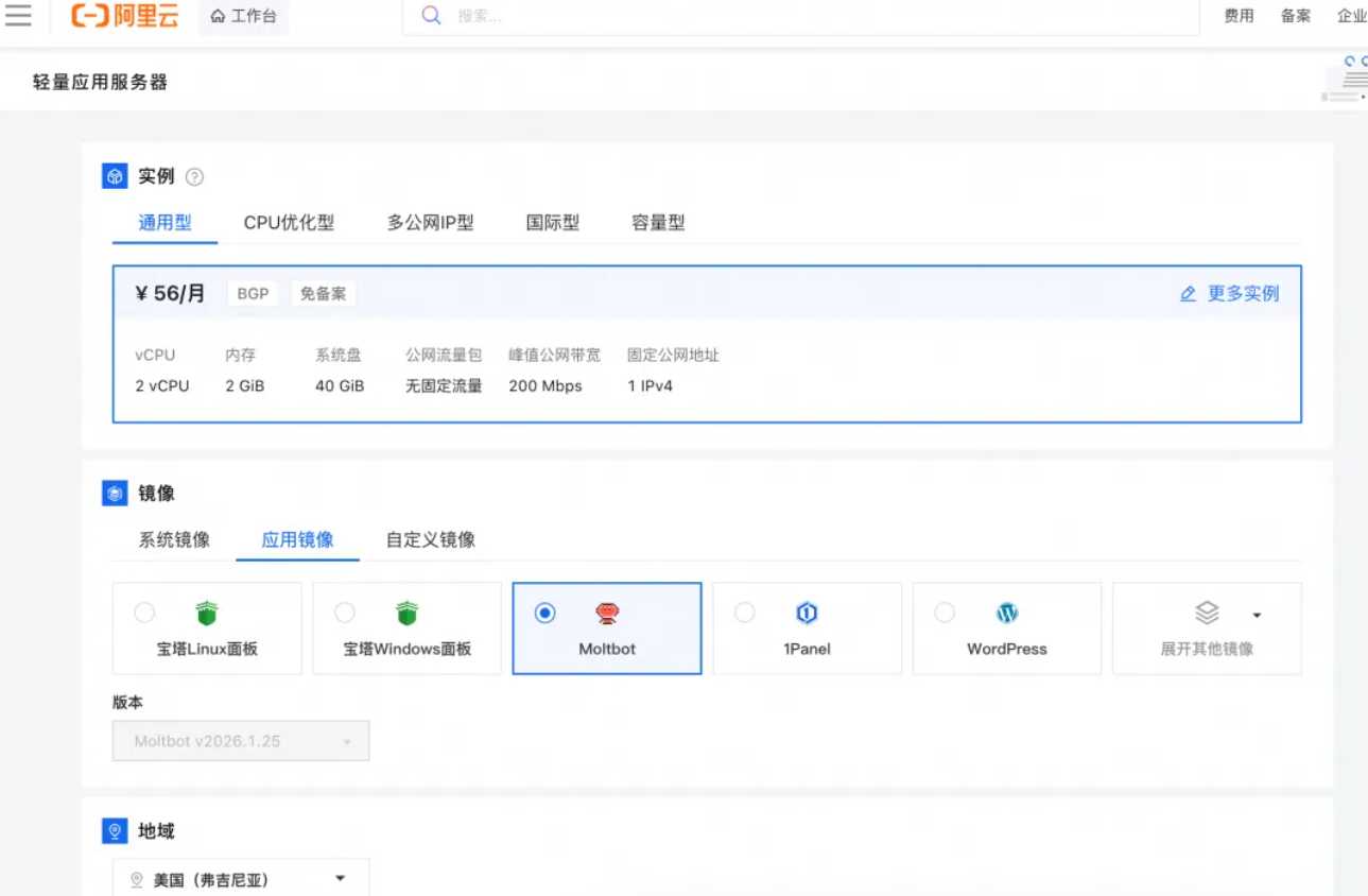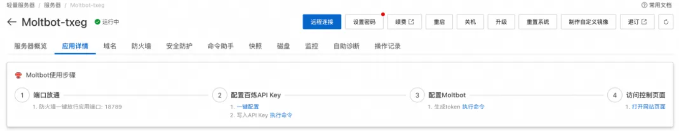 创建实例:在轻量应用服务器选择「应用镜像」->「Moltbot」。