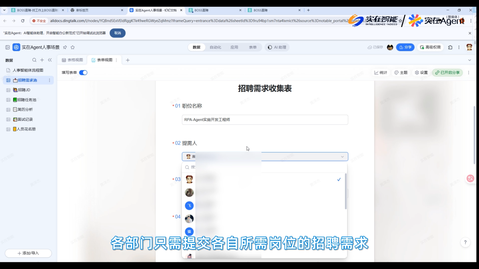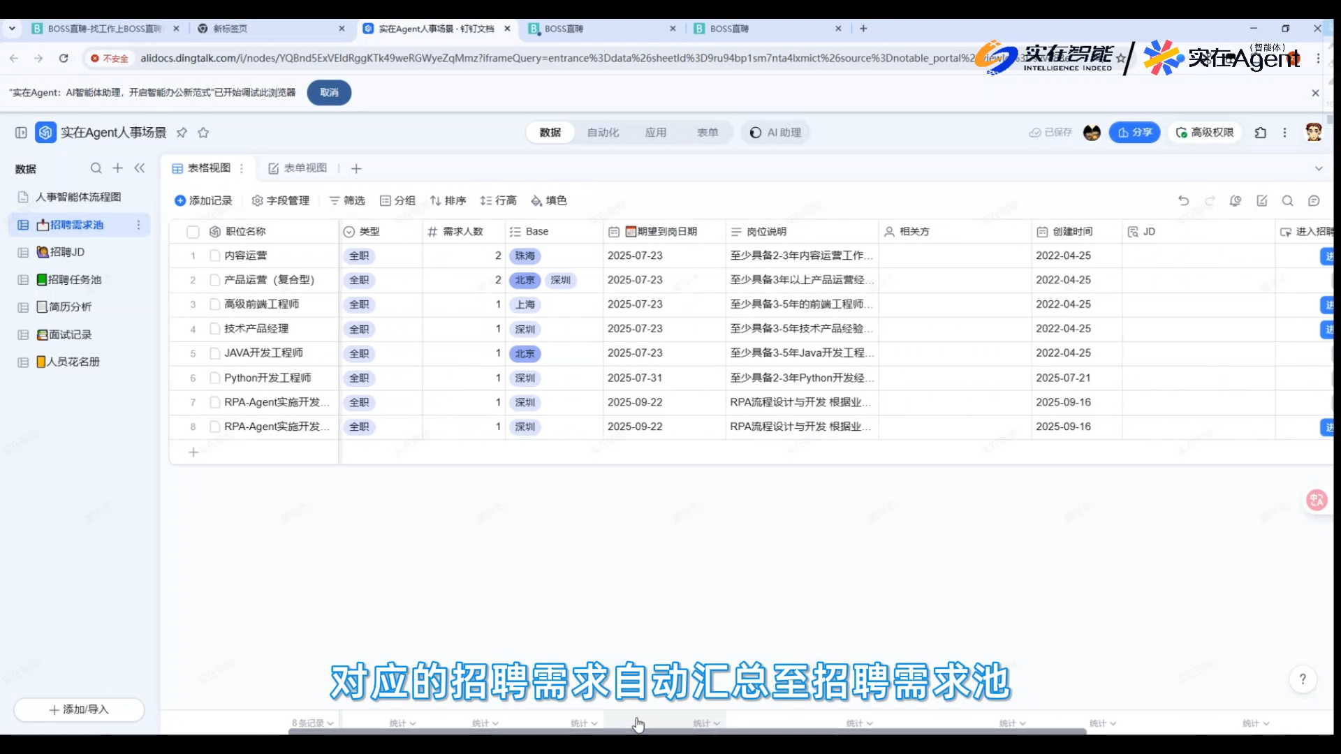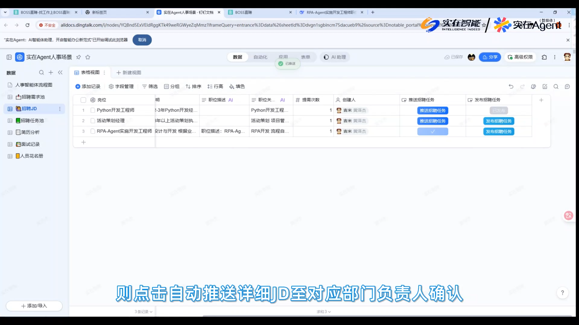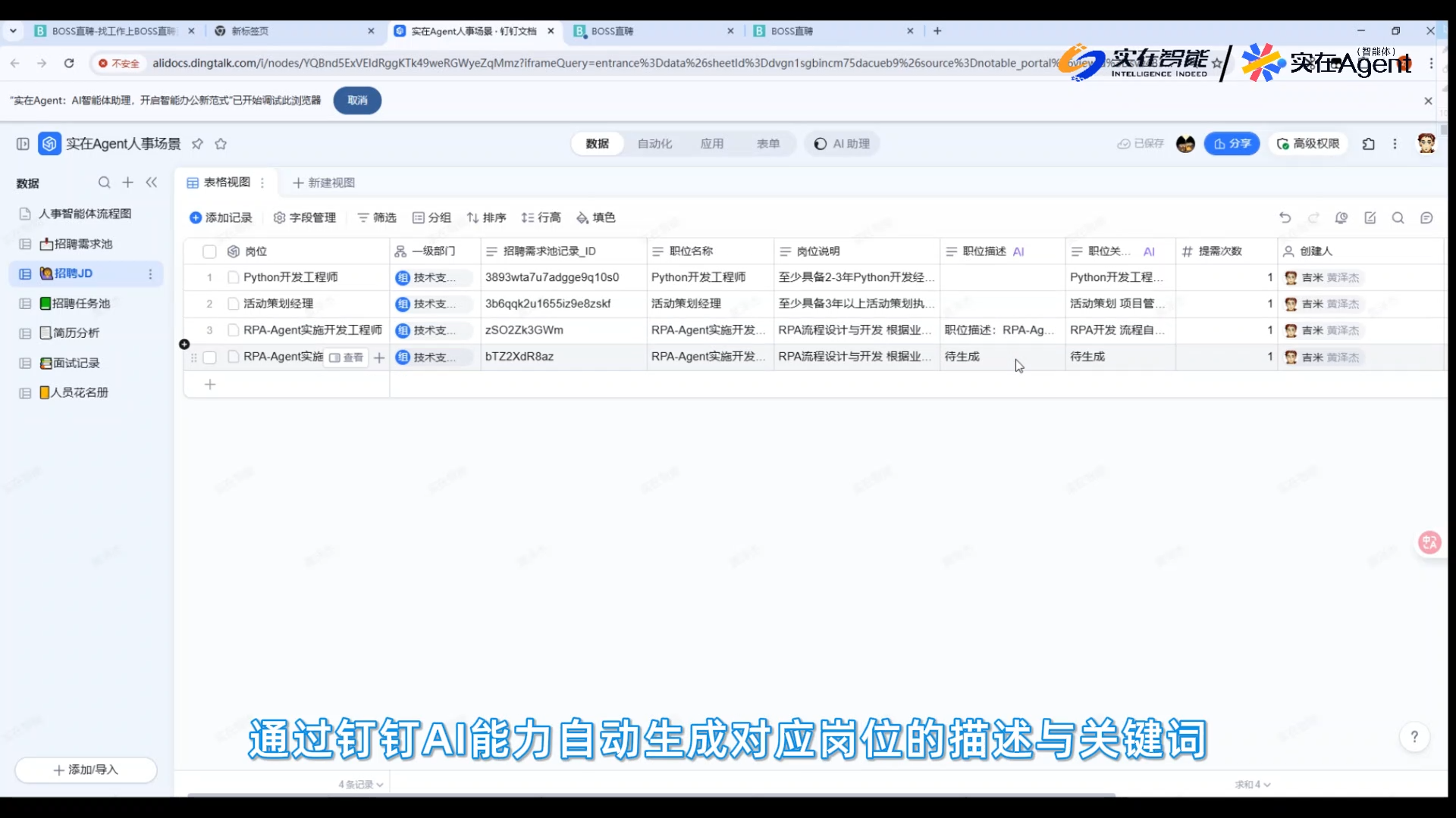 2、这些招聘需求信息就会自动录入到钉钉AI表格,HR只需要查看和核对这些招聘的相关信息;