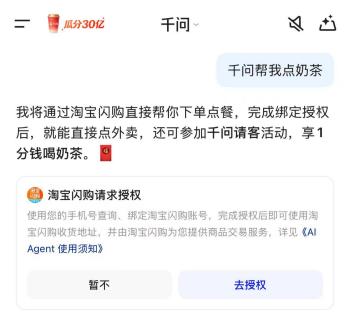 一、在千问APP输入“千问帮我点奶茶”口令,直接发送即可;