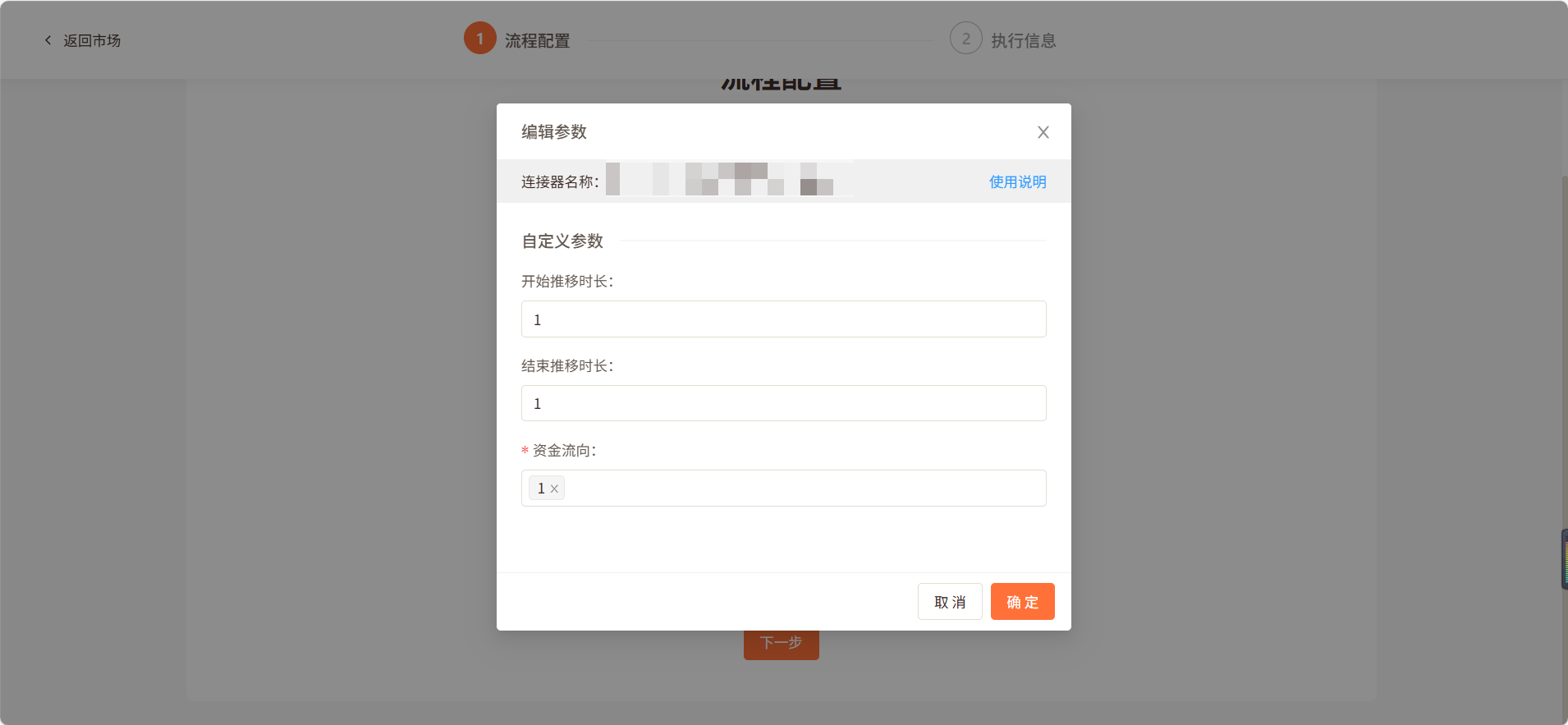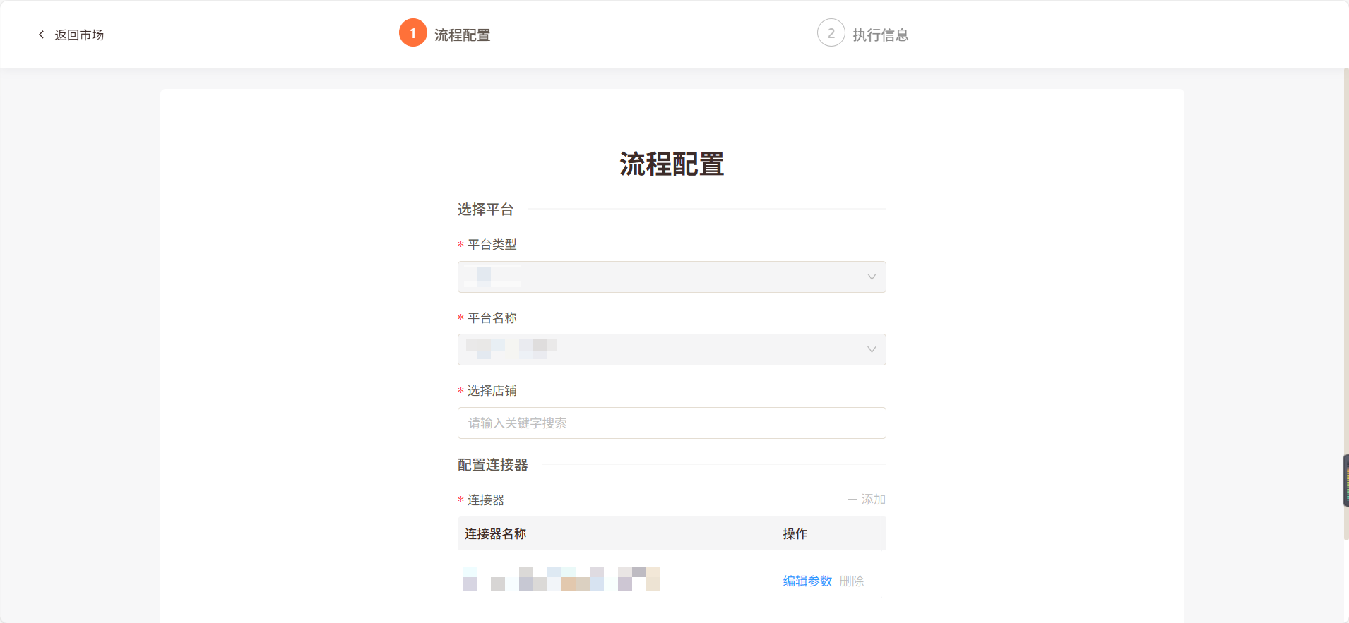 6、选择要取数的店铺,配置连接器的名称,设置好相关的采集参数;