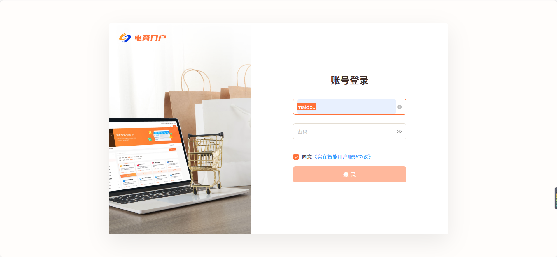 1、打开取数宝电商门户平台,输入已经得到的账号和密码;