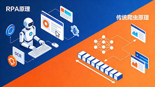 RPA(Robotic Process Automation)采集网页数据与传统爬虫抓取在多个方面存在显著区别。