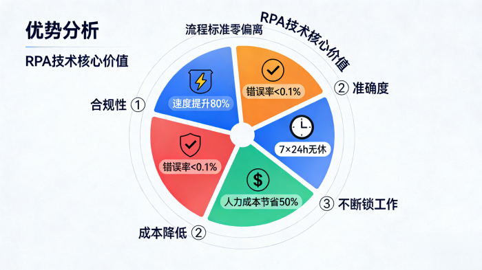 提高合规性:RPA严格按照预设的规则和流程执行任务,不会出现人为的违规操作或偏离标准流程的情况。