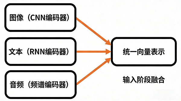 特点:在模型的输入阶段,使用模态特定的编码器(如基于卷积神经网络CNN的图像编码器、基于循环神经网络RNN的文本编码器等)将每种模态数据编码为统一的向量表示后再输入模型。