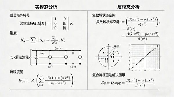 数学基础:实模态和复模态都基于线性振动理论,通过求解系统的特征值和特征矢量来描述系统的振动特性。