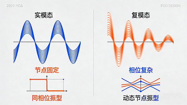 实模态描述了系统在无阻尼或比例阻尼下的振动形态,而复模态则描述了系统在非比例阻尼下的振动形态。