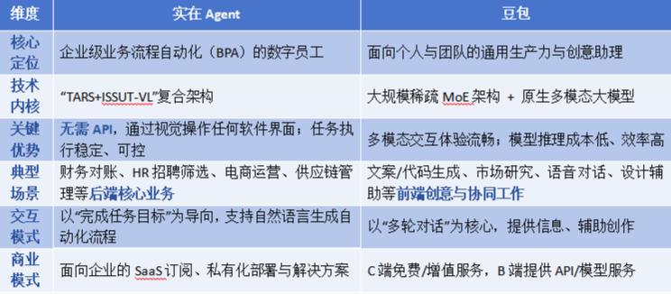 在展开详细分析之前,我们先通过一张表格,快速了解实在Agent与豆包在关键维度上的核心差异。这有助于我们建立一个宏观的认知框架。