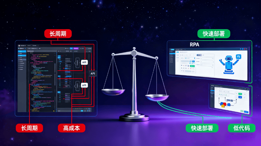 自动化并非一个新概念,为何RPA能引发如此广泛的关注?关键在于它与传统IT自动化的范式差异。传统自动化,如API集成或脚本开发,虽然功能强大,但通常是“重量级”的解决方案。它们深入系统底层,需要专业的IT团队投入大量时间进行开发、测试和维护,且一旦底层系统升级,自动化方案可能就需要重构。