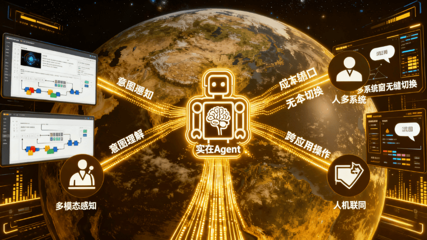 实在Agent的功能是动态且不断扩展的。其核心能力包括:多模态感知,能够像人一样看懂屏幕上的文字、图片、图表和UI控件;意图理解与任务编排,基于大模型能力,精准理解用户的模糊指令,并自动生成执行计划;跨应用操作,无缝穿梭于各类桌面软件、Web应用和API之间;人机协同,在关键决策点或遇到异常时,能主动与人类用户沟通,请求指令或确认信息。值得一提的是,其功能矩阵会随着底层AI模型的迭代和用户反馈,持续进行在线更新和能力增强,确保其始终处于技术前沿。