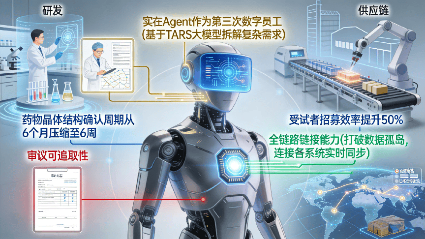在某生物制药公司的试点中,实在Agent将药物晶体结构确认周期从6个月压缩至6周,临床试验受试者招募效率提升50%。这背后是它的三大核心能力:一是强大的理解推理能力,基于实在智能自主研发的TARS大模型,能精准拆解“优化肿瘤药物临床试验方案”这类复杂需求;二是全链路链接能力,彻底打破“数据孤岛”,实现从研发到生产的全流程数据协同;三是合规可追溯性,所有操作都有审计日志,完全符合GMP、GCP等法规要求。对医药企业来说,实在Agent不是简单的工具升级,而是能创造真实价值的“数字同事”。