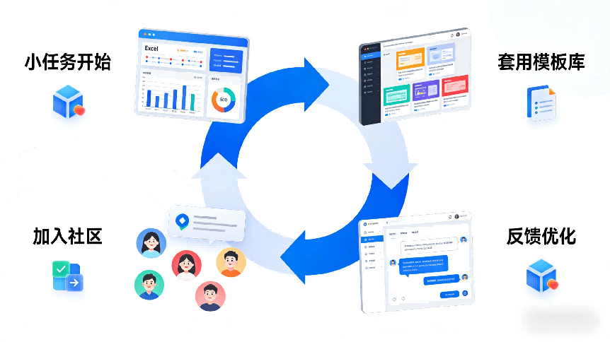 很多人下载工具后,想直接用它解决复杂问题,结果遇到困难就放弃。我的建议是,从“3分钟能完成的小任务”开始,比如用实在Agent自动统计Excel数据、用“扣子”写一段朋友圈文案、用飞书助手整理会议纪要。这些小任务能让你快速感受到工具的价值,建立“用工具能省时间”的正反馈,进而更有动力探索复杂功能。