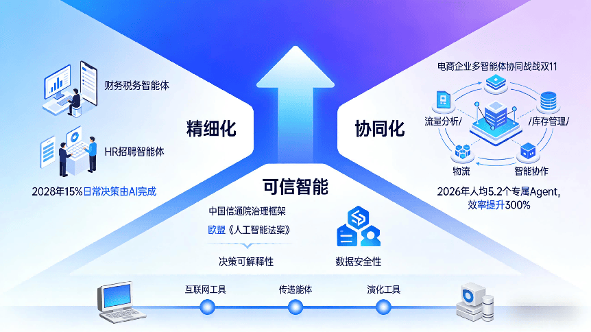 看到这里,相信你已经对国内的Agent智能体有了全面的了解。但智能体的发展才刚刚开始,根据行业报告和技术趋势,它的下一站将朝着“更精细、更协同、更可信”的方向进化。