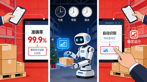 实践优势:国内厂商如实在智能RPA,其智能元素识别技术能高度适配国内外复杂的物流查询页面,并内置OCR组件以应对图片格式的物流信息,其稳定性和准确度在实战中表现出色。