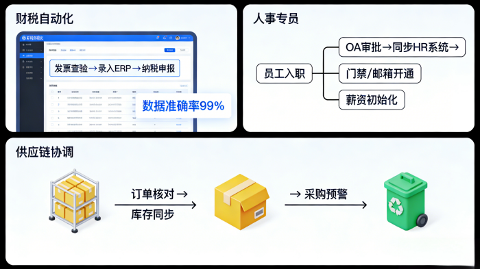 例如,实在Agent可以在新员工信息OA审批通过后,自动同步到HR系统、门禁或邮箱中,并将薪资流程初始化,形成入职闭环。