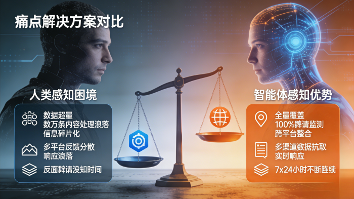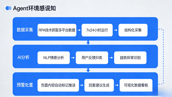智能体没有实体双眼,却能直接感知上万条评价;没有耳朵,却能实时检测全网舆情。这些看似不合理的场景,都在被实在Agent通过技术实现。很多品牌现在都面临一个困境,每天抖音、小红书等平台用户评价众多,但人工团队每天仅能覆盖30%舆情,在信息洪流之中无法脱身。