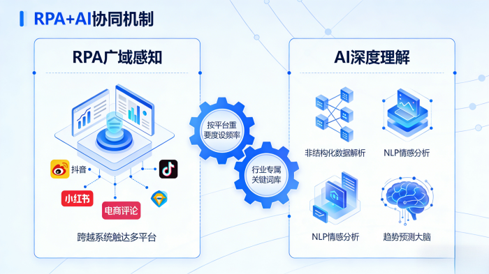 实在Agent进行环境感知的第一个点,利用RPA技术实现自动化对多平台数据进行抓取,也是舆情监控的常用解决方案。