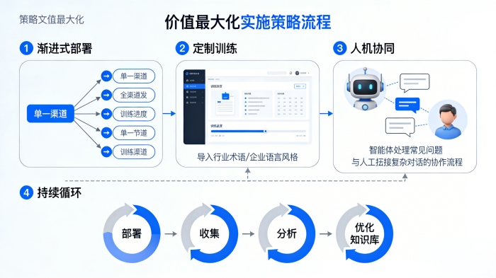 通过部署、收集、分析、优化的良性循环,逐步更新知识库,保证信息具有时效性;对高频问题的回答同样优化策略。