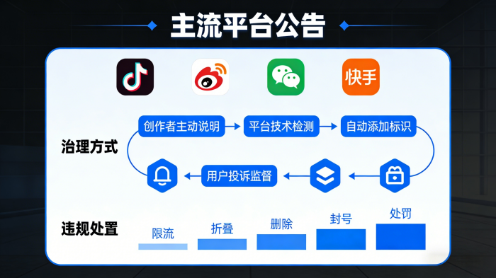 自动《标识办法》生效之日,抖音、微博、微信、快手等主流社媒平台集体发布有关AI合规的公告。