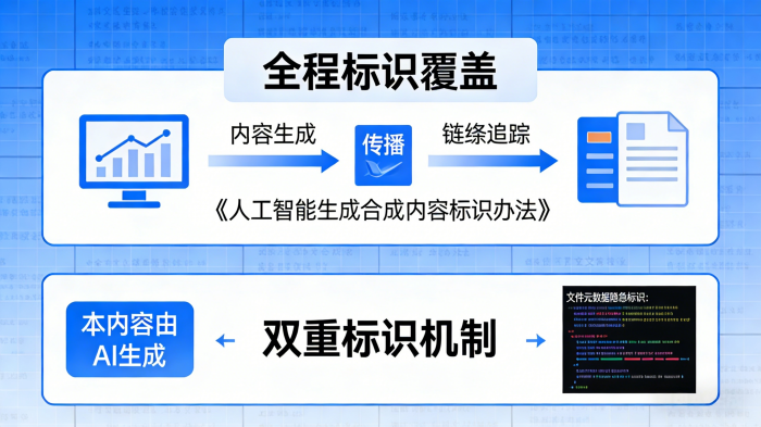 对于AI生成内容而言,显性规则是肉眼可见的文字提示,隐形表示则是被嵌入在内容中的文件元数据。