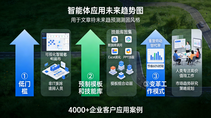 智能体接管PPT繁琐制作流程后,变革的不仅是效率,节省出来的时间还能用来深入研究市场趋势,重新定义人和机器协作的工作范式,提升工作价值。——将流程交给智能体,将思考留给自己。