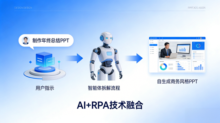 这种一句话完成工作任务的办公体验,核心就是利用如实在Agent这样的企业级通用智能体。就像一名忠实的数字伙伴,能听懂你的需求,自动规划执行,并像人类一样在电脑上操作办公软件。本文将从智能体操作概念、具体流程、应用场景、未来趋势等四个维度,为大家深度剖析如何使用智能体为我们自动创作PPT。