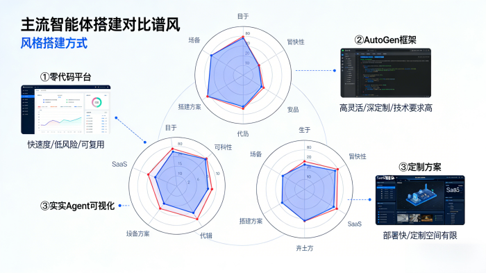 如实在Agent等商业成熟的平台,由业务专家和IT协同,通过可视化构建智能体,由快速度、低风险和可复用等优势,在高ROI业务场景能解决明确需求。