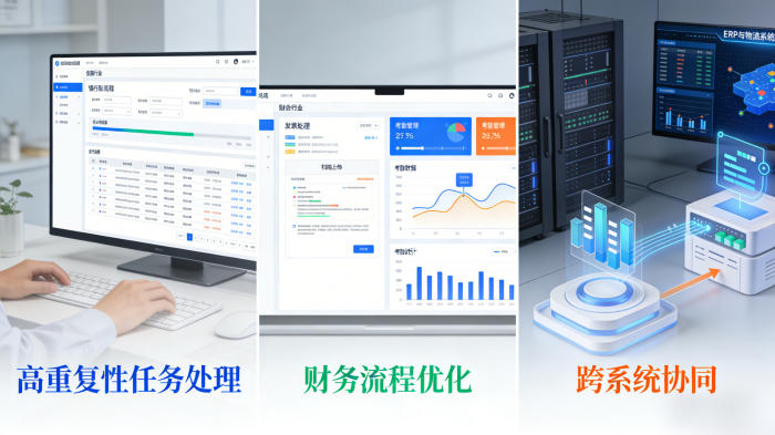 这些机器人不是实体,而是一套能自动执行软件的程序。通过智能识别屏幕上的元素,模拟鼠标点击、键盘输入等操作,在短时间内切换不同应用,完成数据搬运、信息核对等基础工作。