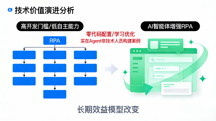 从传统RPA的规则执行,到AI智能体引入后,装上眼睛和大脑,这让RPA进入自主理解、规划路径以及执行任务等全新的阶段。