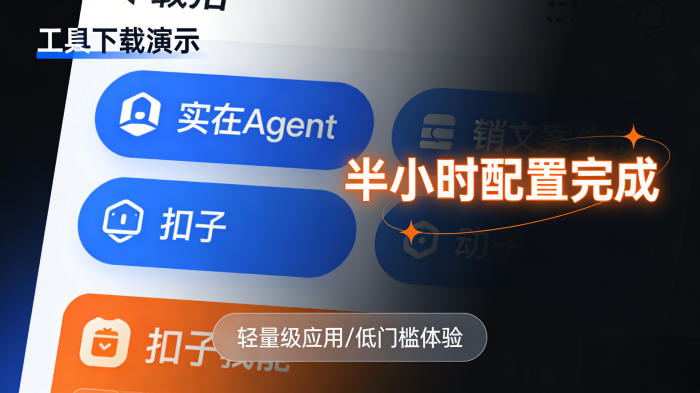 通过应用商店或者云市场直接下载如“实在Agent”、“扣子”此类平台,获得轻量级应用。这些智能体不仅能生成内容、互动问答,还能实现自动化部署,替代人类工作。核心价值在于用低门槛来体验这样的场景,在半小时内下载并配置一个营销文案。