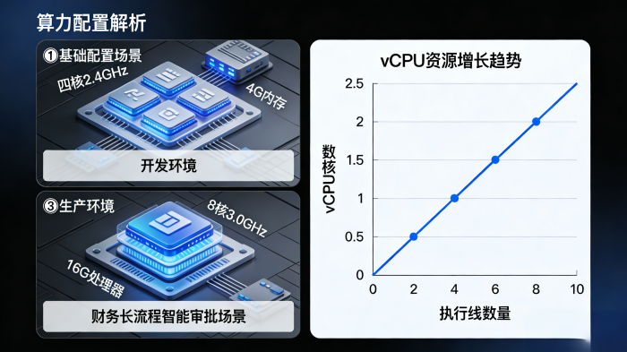长流程往往内置了复杂逻辑判断,很多子任务或工具调用,这就需要硬件能提供充沛且可动态调度的算力资源。