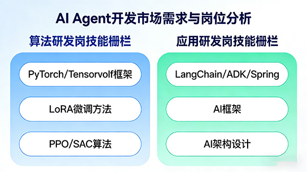 当前,企业对AI Agent开发者的需求各有不同,有的是要求要有深度算法功底的研发岗,有的是要求能够将应用成功落地的工程型岗位。