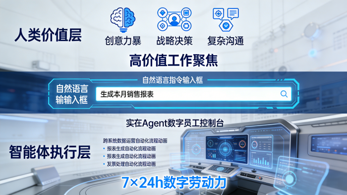 未来的工作图景已经清晰:由AI智能体驱动的“数字员工”将包揽所有规则明确、重复性高的流程任务,实现全天候的精准运行;而人类则得以解放出来,专注于更需要创造力、策略思考和复杂沟通的高价值工作。以实在Agent为代表的平台,正通过将大模型的认知能力、环境感知与自动化执行能力扎实地产品化,让这个人机协同的未来变得触手可及。
