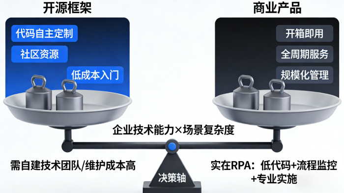 二、 关键抉择:开源框架 vs. 商业产品,差别在哪?