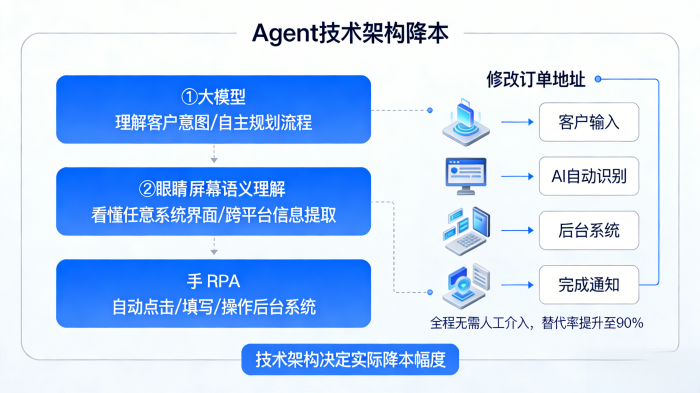 更深层的节约在于对运营流程的优化。例如,新员工平均要培训3-6个月才能上岗,而基于AI的辅助系统可以把培训周期缩短近一半。再比如,某电信公司引入RPA机器人自动处理话务统计和数据分发,仅这一项每天就节省9个人力,一年省下12万多,而且几乎杜绝了人为差错。这些由效率提升、错误减少、培训加速带来的节省,虽然不直接体现为减员,却实实在在地降低了每单位服务的边际成本。