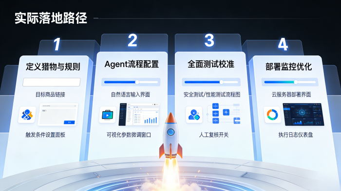从“自动执行”到“智能决策”的潜力:结合AI,你可以设想更复杂的场景。比如,指令可以是:“监控这几个同类商品,哪个先降到利润空间超过30%的价格,就抢哪个。” 这要求系统进行简单的比价和计算决策。实在Agent所代表的智能化方向,正让这种好用且智能的自动化成为可能。