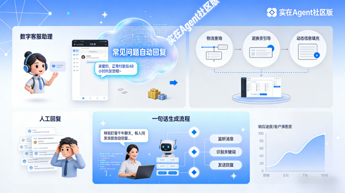 今天,一个完全免费、零门槛的解决方案,能让你的客服响应速度在几分钟内实现质的飞跃:通过实在智能的永久免费社区版实在Agent,你可以轻松部署一位7x24小时在线的“数字客服助理”,让它自动、精准地响应大量常见问题,将你从繁琐的重复劳动中彻底解放。