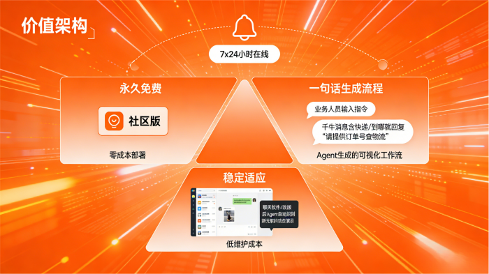 1、永久免费:将自动化变为普惠工具(实用):“社区版永久免费”对于客服自动回复这种高频、刚需场景是革命性的。它意味着任何规模的卖家,都可以无成本地部署一个基础但强大的自动化响应层,过滤掉超过50%的重复咨询。这种“零成本获取关键生产力”的特性,是其实用价值的核心。