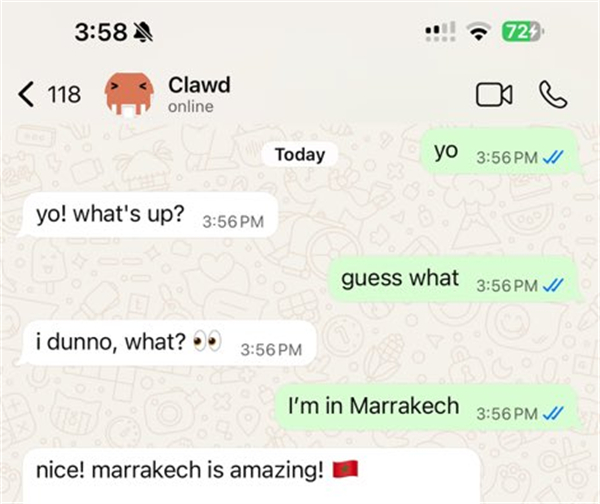 然后再通过Telegram、WhatsApp、Slack、Discord、Microsoft Teams等即时通讯工具跟它互动,发出命令。