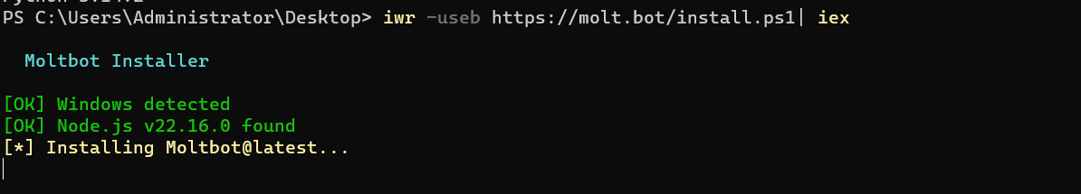 安装命令(Windows PowerShell 管理员模式):iwr -useb https://molt.bot/install.ps1| iex