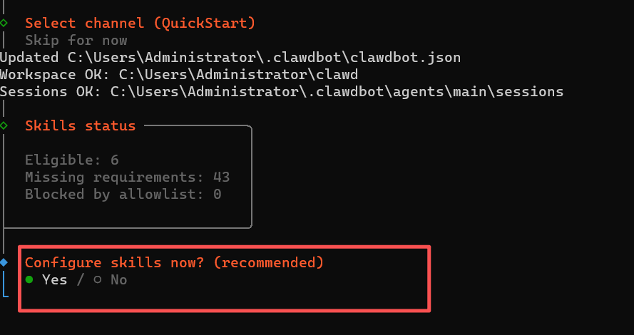 国外软件配置可选择 No/Skip。