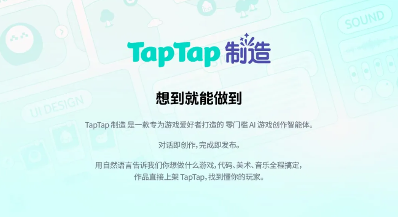 TapTap 于 2026 年 1 月 30 日推出的 AI 游戏创作智能体,其核心理念是“想到就能做到” 。