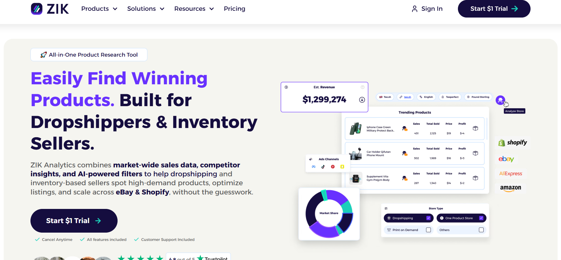 Zik Analytics: 侧重于竞争对手调研,可快速提取 Top 卖家的选品逻辑。